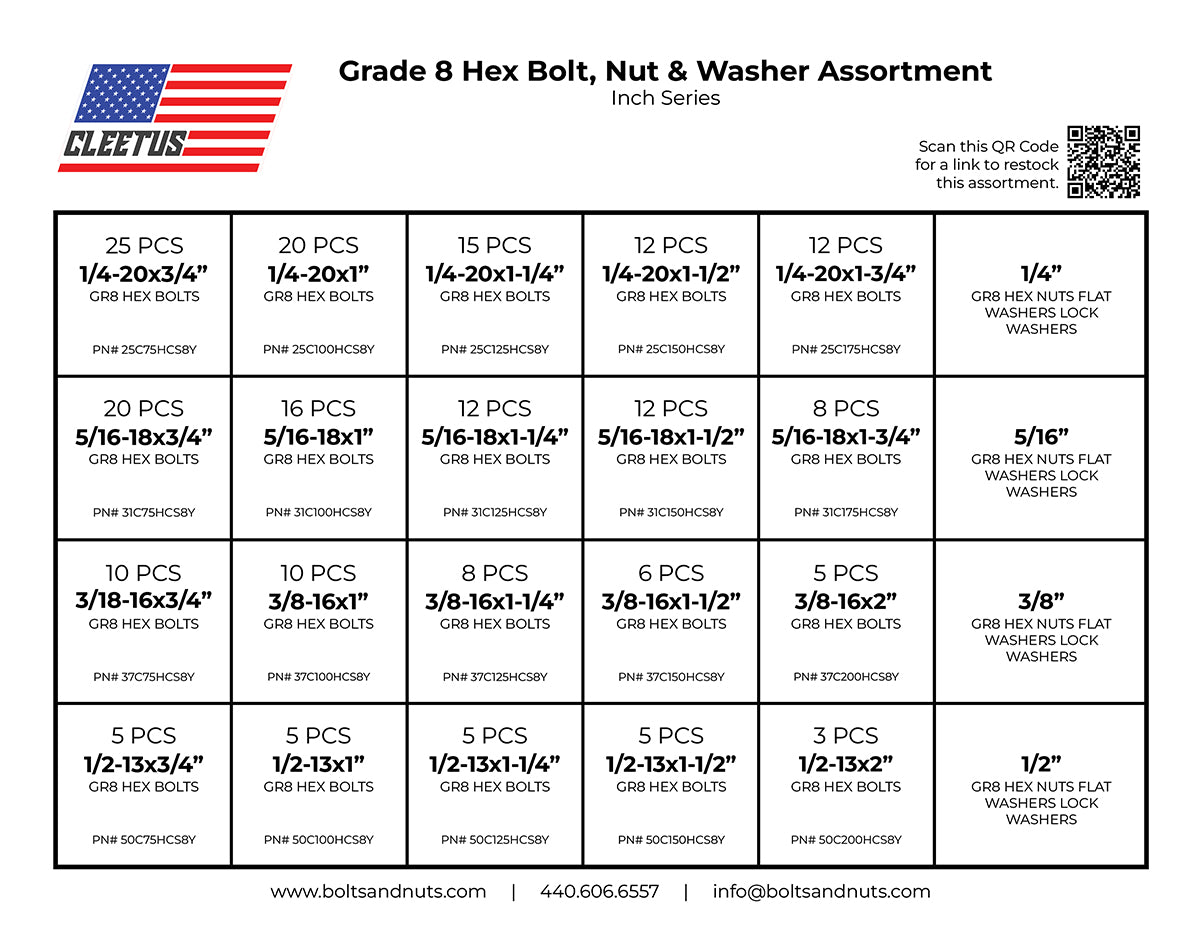 Inch Hex Bolt, Nut & Washer Assortment - 600 Piece