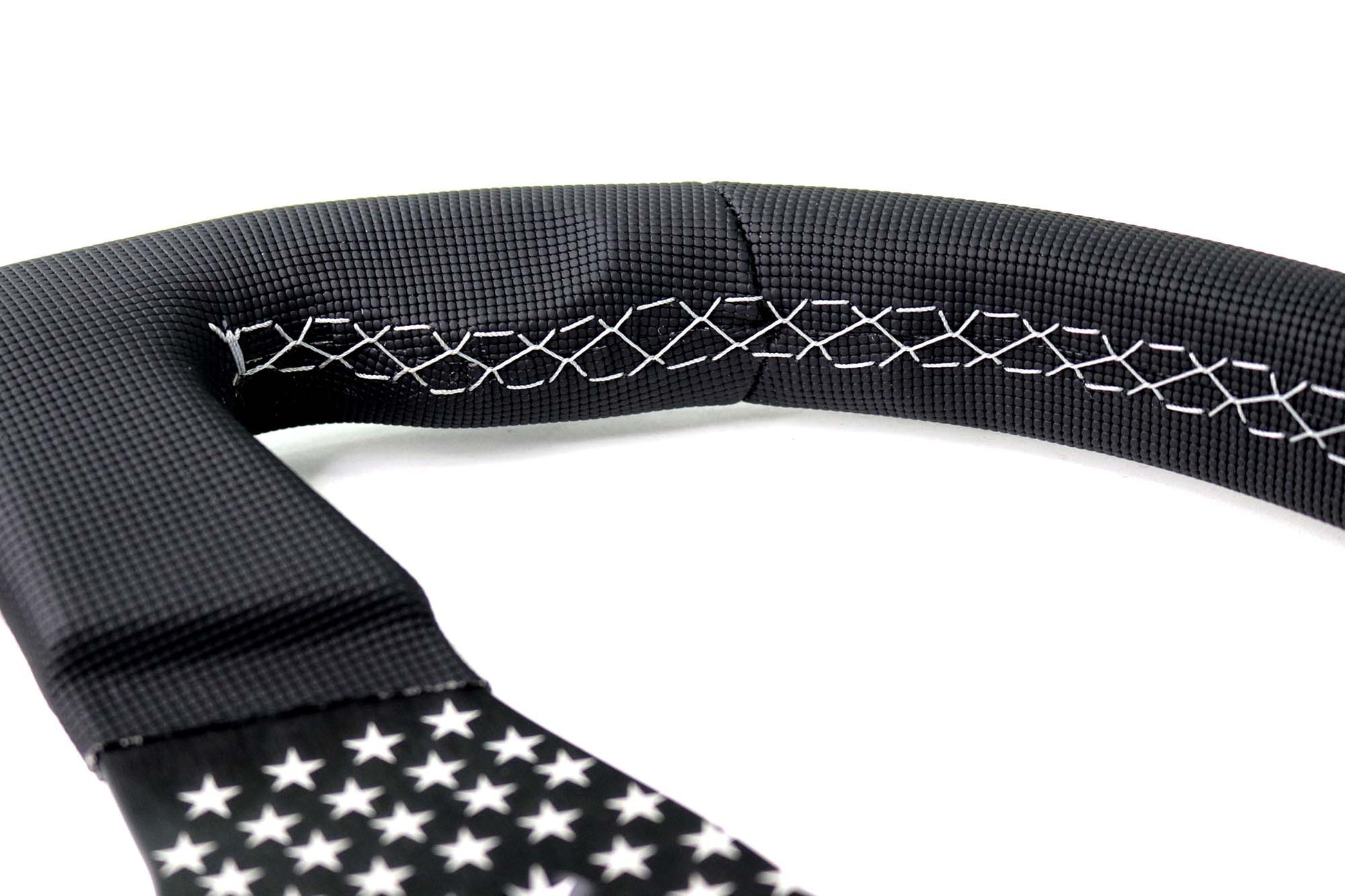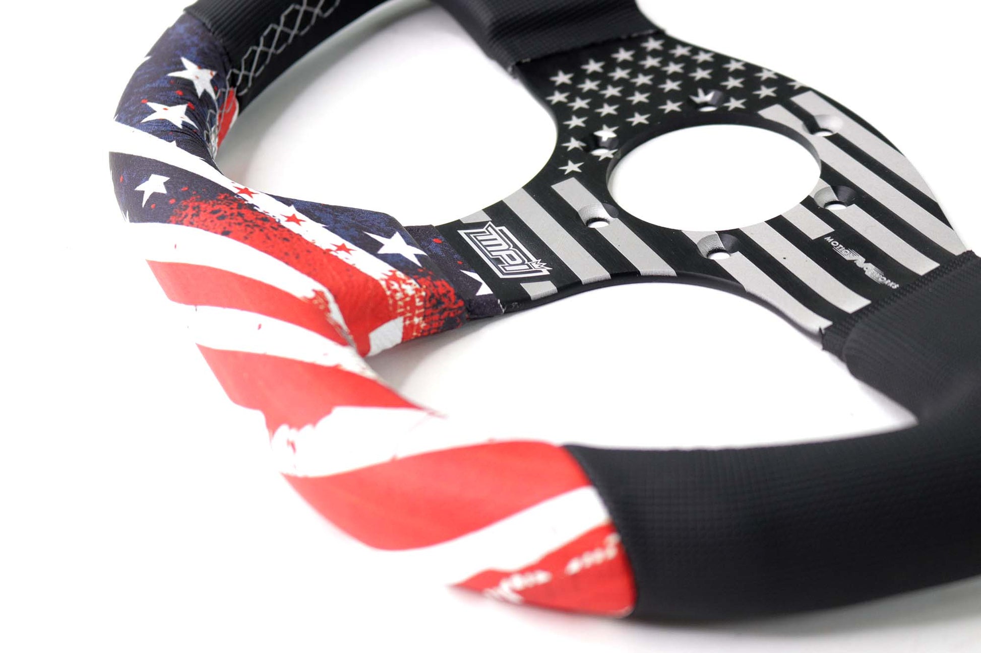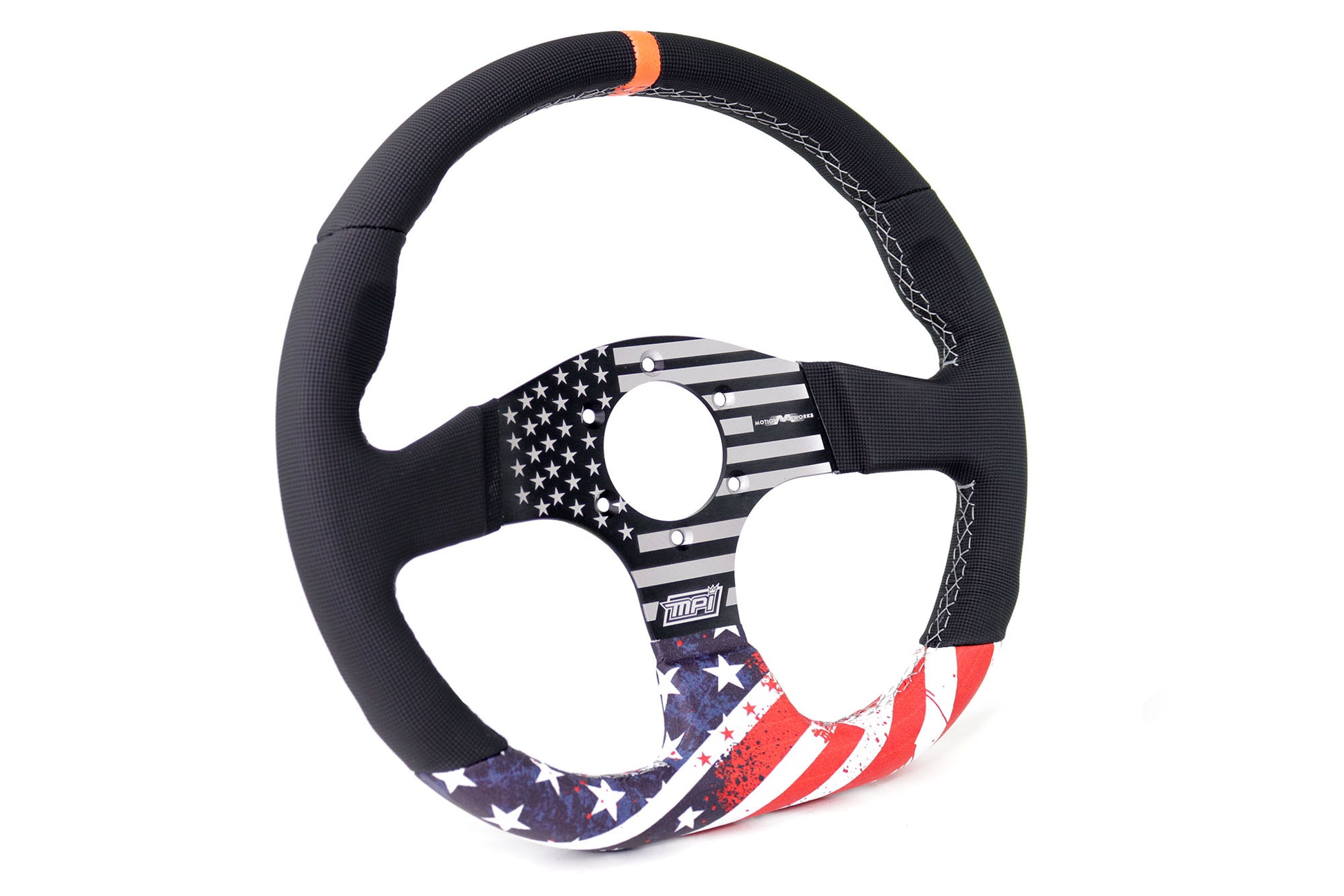Featuring an Italian made MPI wheel partially wrapped with American Flag leather. Quality is top tier with looks being just as awesome!