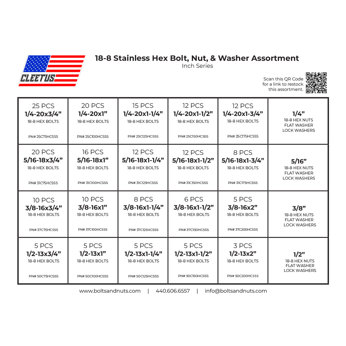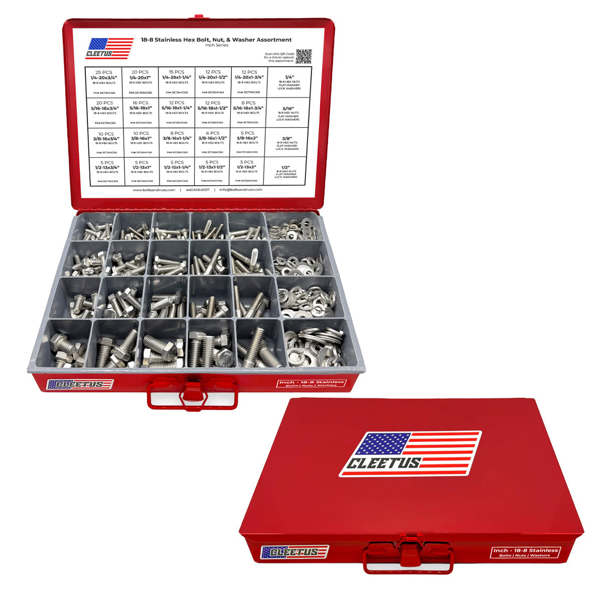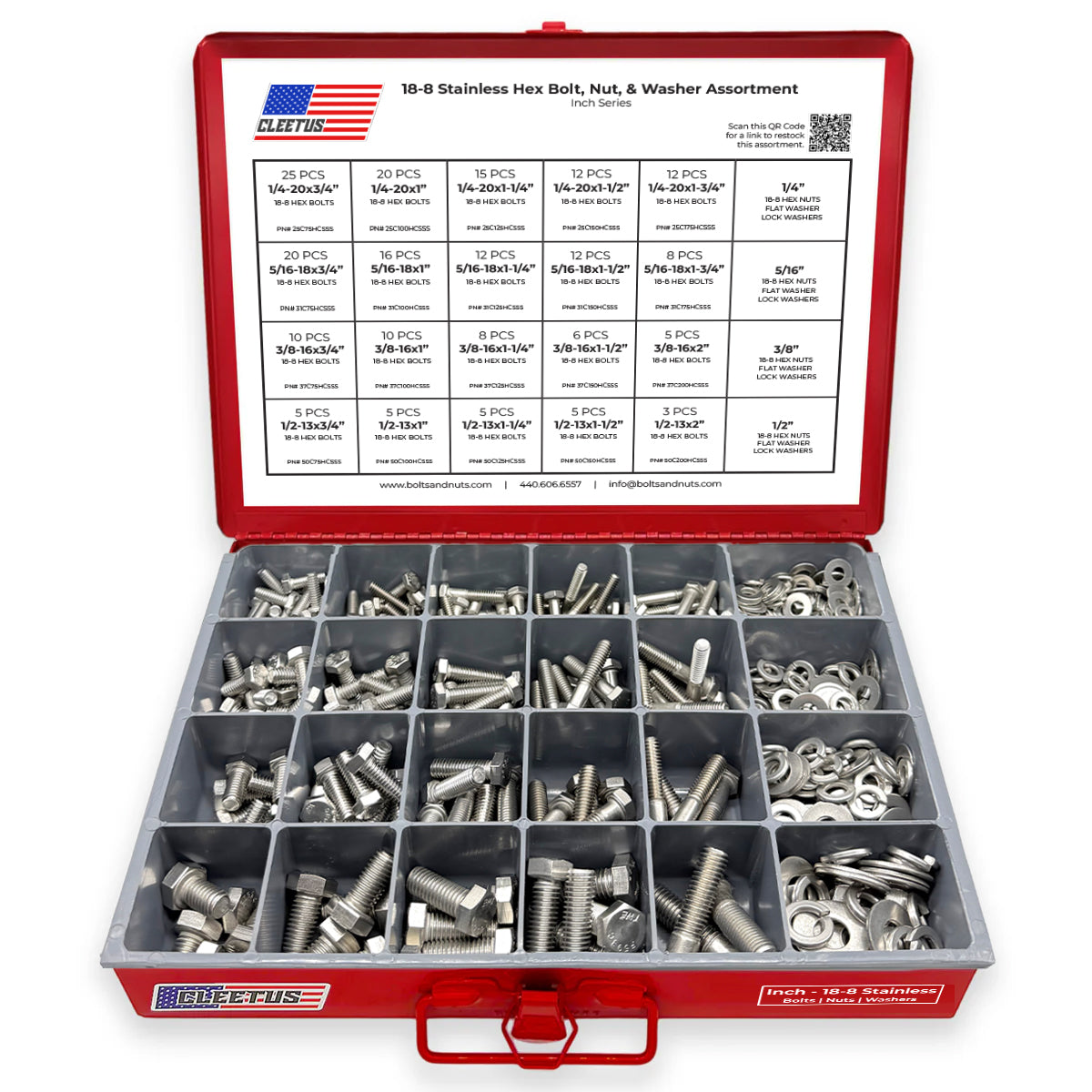 Inch Stainless Hex Bolt, Nut & Washer Assortment - 600 Piece