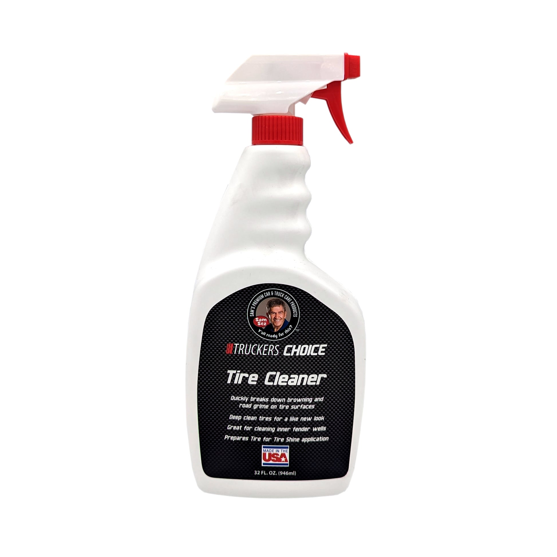 Truckers Choice Tire Cleaner is formulated using mild but tough cleaning agents designed to safely and quickly remove road grime that adhere to black-wall and white-wall tire surfaces. This fast-acting formula dissolves brake dust, grease, grim, and road film on contact. Quick and easy to use.