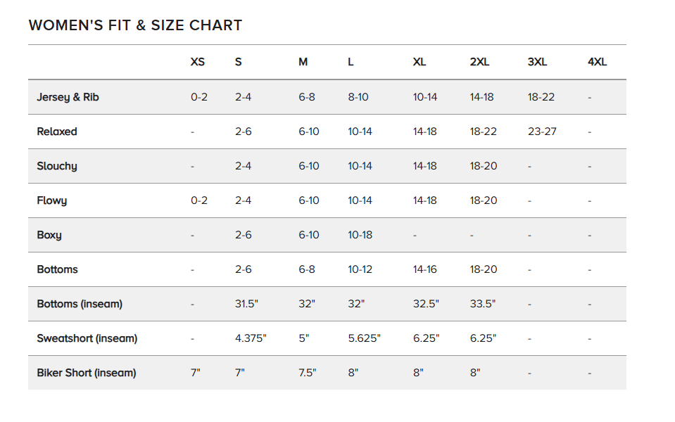 Side-seamed. Boxier, relaxed fit. Set-in sleeves. Double stitched neck. Mid length